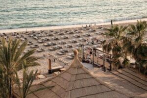 Hotel Cook's Club Alanya má vlastní soukromou pláž s jemným pískem, která je vzdálená jen kousek od hotelového areálu. Pláž je vybavena lehátky a slunečníky zdarma, a i když je oddělena místní komunikací, nabízí pohodlné prostředí pro relaxaci u moře.