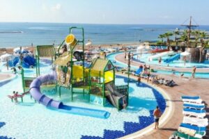 V hotelu najdete široké spektrum vybavení, včetně několika restaurací, barů, televizní místnosti, cukrárny, obchodní pasáže a bazénů. Nejvýraznějším prvkem je však aquapark s mnoha skluzavkami a tobogány, což je skvělé pro rodiny s dětmi.