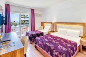 Ubytování je poskytováno na pokojích s maximální kapacitou 3 osob, každý vybavený vlastním sociálním zařízením, individuálně nastavitelnou klimatizací, televizorem a balkonem pro pohodlný pobyt. Program ALL INCLUSIVE zahrnuje bohaté bufetové snídaně, obědy a večeře, doplněné půlnočním snackem. V časovém rozmezí od 10:00 do 23:00 jsou k dispozici nealkoholické a místní alkoholické nápoje včetně čaje a kávy.