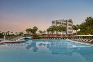 Vybavení hotelu zahrnuje vstupní halu s recepcí, hlavní restauraci, 9 A la Carte restaurací, 7 barů, bazény, aquapark, plážový bar a diskotéku. K dispozici jsou také různé typy pokojů, včetně Dvojlůžkové izby Deluxe s výhledem na moře, rodinných apartmánů a vybavených izeb v části Laguna. Hotel poskytuje široký výběr stravovacích možností s programem Ultra All Inclusive, který zahrnuje bufetové snídaně, obědy a večeře, olovrant po celý den, noční snacky a alkoholické a nealkoholické nápoje 24 hodin denně.