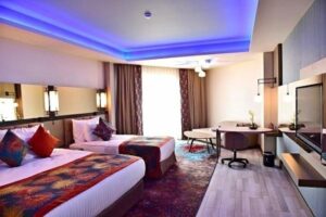 Ubytování je pohodlné a moderní s balkonem, satelitní TV, šatnou, bezpečnostní schránkou, rychlovarnou konvicí a vlastní koupelnou. Stravování je zajištěno formou ultra all-inclusive, zahrnující bufetové snídaně, obědy a večeře, místní alkoholické a nealkoholické nápoje po celý den, včetně některých importovaných nápojů během hlavních jídel.
