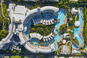 Vybavení letoviska zahrnuje impozantní hotelovou halu s recepcí, hlavní restauraci a snack bar, deset různých barů a devět à la carte restaurací, které hostům poskytují širokou škálu kulinářských zážitků. K dispozici jsou také 8 bazénů, vnitřní bazén, dětské bazény, tobogány, jacuzzi, fitness centrum, obchody, nákupní zóna, Crassula spa a wellness centrum, konferenční místnosti, biliár, bowling, WiFi a mnoho dalšího.