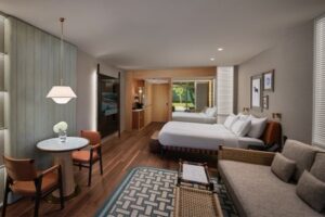 Vybavení tohoto rozsáhlého plážového resortu zahrnuje elegantní hlavní budovu a několik vil, obklopených rozlehlou zahradou. Hosté mohou využívat širokou škálu zařízení, včetně restaurací s různými kuchyněmi, bazénů, wellness centra, kadeřnictví a sportovišť. Ubytování je elegantní, s možností výběru z různých typů pokojů, včetně prostornějších junior suit a luxusních vilek.