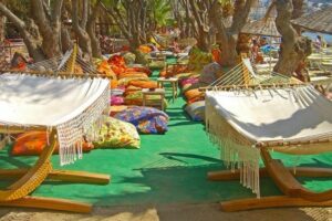 Pro ty, kteří hledají něco klidnějšího, nabízí skrytý klenot Camel Beach, pojmenovaný po své jedinečné topografii, která připomíná siluetu velblouda, klidnou a méně přeplněnou alternativu. Díky průzračné tyrkysové vodě a měkkému písku je oblíbeným místem pro šnorchlování a piknik. Pláž Türkbükü na západní straně poloostrova je elegantní a luxusní destinace známá svými okouzlujícími plážovými kluby, luxusními resorty a butiky. Návštěvníci si mohou dopřát prvotřídní stolování, popíjet koktejly u moře a užít si sofistikovaný plážový zážitek.