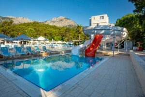 Sportovní a zábavní aktivity nejsou opomenuty, a to s nabídkou stolního tenisu, šipek, volejbalu a aerobiku. Pláž, která má délku 200 metrů a skládá se z písku a oblázků, je vybavena zdarma poskytovanými slunečníky, lehátky a ručníky. K dispozici je také plážový bar.
