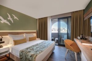 Ubytování v klimatizovaných pokojích zahrnuje satelitní TV, minibar a balkon s výhledem do zahrady nebo na moře. Koupelna je vybavena sprchou, fénem a bezplatnými toaletními potřebami.
