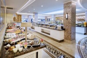 Ubytování zahrnuje vkusně zařízené dvoulůžkové pokoje s možností přistýlky, vlastní koupelnou, telefonem, televizí, minibarem a balkonem nebo terasou. Stravovací možnosti zahrnují all-inclusive s nabídkou bufetových snídaní, obědů a večeří, pozdní snídaně, lehkého občerstvení, kávy, zákusků, palačinek, nočního snacku a nealkoholických a místních alkoholických nápojů.