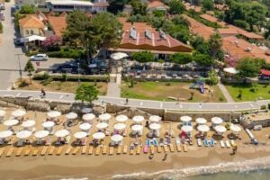 Pláž je krásná a písčitá s pozvolným vstupem do moře. Hosté mohou využívat lehátka se slunečníky, které jsou zdarma k dispozici. Plážový bar je také k dispozici, a hosté zde mohou v klidu relaxovat a užívat si slunečního dne.