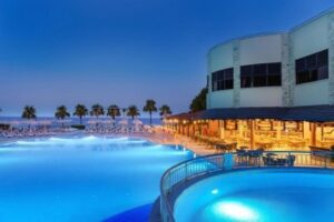 Komplex nabízí širokou škálu vybavení a služeb, včetně recepce, hlavní bufetové restaurace v hlavní budově a tří à la carte restaurací (rybí, turecká, mezinárodní). Dále zahrnuje zařízení jako gözleme house, lobby bar, bar u bazénu, diskotéku, TV místnost, kavárnu a několik bazénů včetně menšího aquaparku. Hosté mohou využívat také tenisové kurty, squash, plážový volejbal, basketbal, stolní tenis, minigolf, fitness centrum a turecké lázně. Hotel nabízí široký rozsah animačních a zábavních programů pro děti i dospělé, včetně nočních show, kabaretů, tanečních představení, bingo a dalších aktivit.