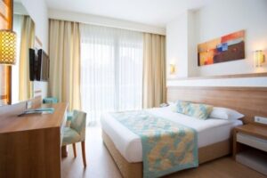 Ubytování v hotelu zahrnuje dvoulůžkové pokoje s možností přistýlky a rodinné pokoje pro až 4 osoby. Všechny pokoje jsou vybaveny klimatizací, koupelnou se sprchou, WC, fénem, telefonem, minibarem (s vodou po příjezdu), trezorem (za poplatek) a balkonem. Hosté mohou vychutnat program all-inclusive, který zahrnuje bufetové snídaně, obědy a večeře, odpolední kávu a zákusky u bazénu, občerstvení na pláži a půlnocní polévku. Neomezená konzumace nealkoholických a místních alkoholických nápojů je k dispozici od 10:00 do 24:00.