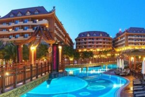 V hotelu jsou také k dispozici bohaté rekreační a sportovní možnosti, včetně animačních programů, wellness procedur, sportovních her a vodních aktivit na pláži. Dětským hostům bude zaručena zábava v lunaparku, dětském bazénu a dětském klubu. Tento resort je ideální pro ty, kteří hledají luxusní plážovou dovolenou v Turecku s exotickým nádechem a širokou škálou možností zábavy a odpočinku.