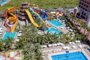 Royal Raj Mahal je komplexní hotelový resort situovaný v oblíbeném tureckém letovisku Side, které se nachází v provincii Antalya na jihovýchodním pobřeží Středozemního moře. Mezinárodní letiště v Antalyi je vzdáleno přibližně 70 kilometrů od hotelu, a historické centrum Side leží asi 5 kilometrů daleko. Hosté mají tedy snadný přístup k různým turistickým atrakcím a místům zájmu v této oblíbené turecké destinaci.