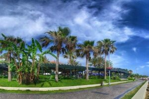 Pláž přímo před hotelem je písečná, široká, s pozvolným vstupem do moře a nabízí sezónní nabídku motorizovaných i nemotorizovaných vodních sportů (za poplatek). Klienti mají k dispozici lehátka se slunečníky zdarma a mohou využívat služeb plážového baru, který je součástí programu all inclusive.