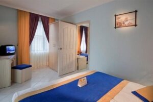 Ubytování je poskytováno ve prostorných dvoulůžkových pokojích s možností jedné přistýlky, vybavených vlastním sociálním zařízením, individuální klimatizací, telefonem, satelitní TV, minibarem (doplnění za poplatek), trezorem (za poplatek) a balkonem s výhledem do zahrady a okolí. Rodinný pokoj pro až 4 osoby je k dispozici na vyžádání, a za poplatek je možné získat dětskou postýlku a vysokou jídelní židličku.