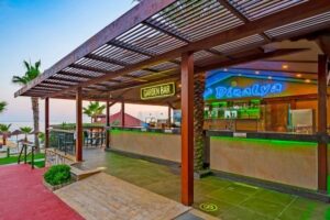Přímo u hotelu se nachází písčitá pláž, kterou hosté mohou využívat. K dispozici je také plážový bar, a slunečníky, lehátka a osušky jsou poskytovány bezplatně, což přispívá k pohodlnému a relaxačnímu pobytu na pobřeží Středozemního moře.
