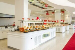 Ubytování v klimatizovaných pokojích zahrnuje moderní vybavení, jako je satelitní TV, minibar a balkon s krásným výhledem. Program All Inclusive zahrnuje snídaně, obědy a večeře formou bufetu, pozdní snídaně, odpolední snack a možnost večeře v a la carte restauracích s nutností rezervace. Minibar je denně doplňován vodou, a alkoholické a nealkoholické nápoje místní výroby jsou k dispozici od 10:00 do 24:00 hodin.