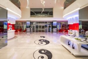 V hotelu je 256 pokojů, elegantní vstupní hala s recepcí, výtahy, hlavní restaurace a několik a la carte restaurací s různými kuchyněmi. Hosté mohou využívat bazény, včetně jednoho s atraktivními skluzavkami, a dětský bazén pro nejmenší. Na terase na slunění jsou k dispozici lehátka, slunečníky a osušky zdarma.