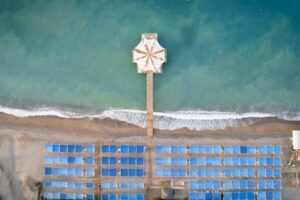 Pláž před hotelem je krásná dlouhá písčitá pláž s pozvolným vstupem do moře a širokou nabídkou motorizovaných i nemotorizovaných vodních sportů (za poplatek). Lehátka, slunečníky a osušky jsou poskytovány zdarma.